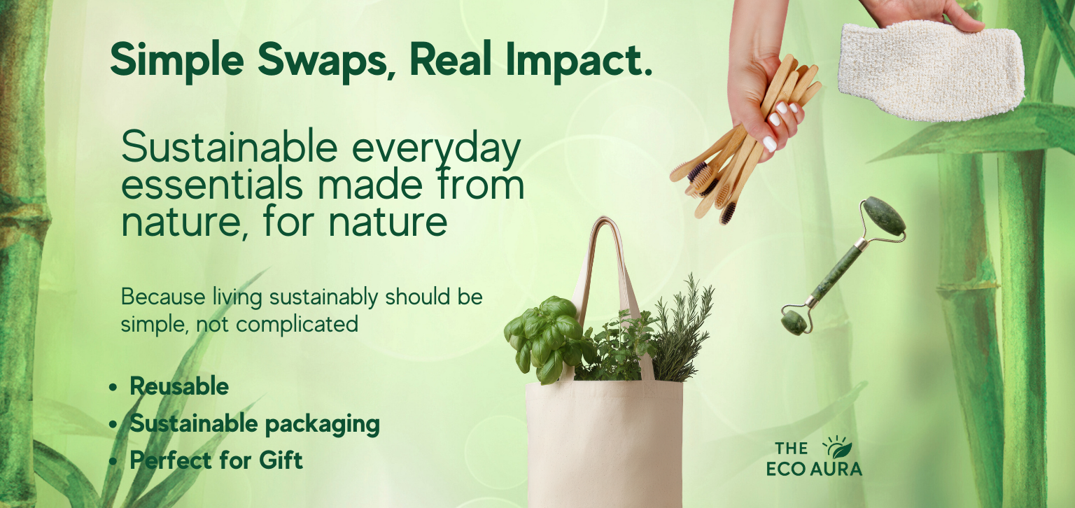 We started The Eco Aura because we wanted sustainable living to be easy, attractive, and practical. Every product we make — from bamboo essentials to hand-painted cotton totes — is carefully chosen for durability, biodegradability, and low environmental impact. By focusing on simple, beautiful swaps you can use every day, we help people reduce plastic waste, protect natural resources, and build better habits — one small change at a time.